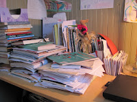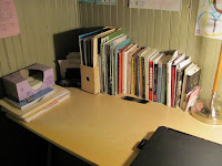 But after reading Kara’s wonderful post about framing tasks as questions and Kay’s post with some tips for keeping a clean house in the midst of pre–schoolers, I knew I needed to do something to clear the clutter. Then I was inspired by this photo of Vicki’s office, and I realized that I didn’t need to tackle the whole house (or even the basement); I just needed to clear some space so I could think again.